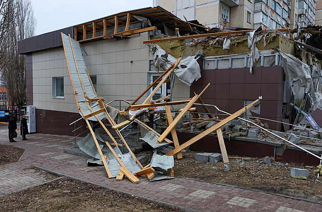 Zničená budova v Nikolskoje v Belgorodské oblasti. Ruské příhraniční regiony v souvislosti s ruskou invazí do sousední země čelí ostřelování a útokům dronů, které ruské úřady připisují Ukrajině. (18. března 2024)