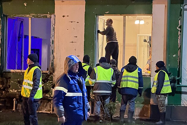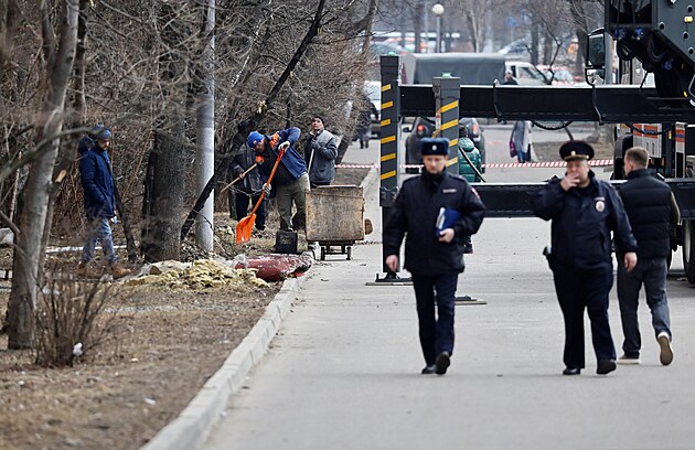 Pracovníci odklízejí následky dronového útoku v Moskvě. (11. března 2025)