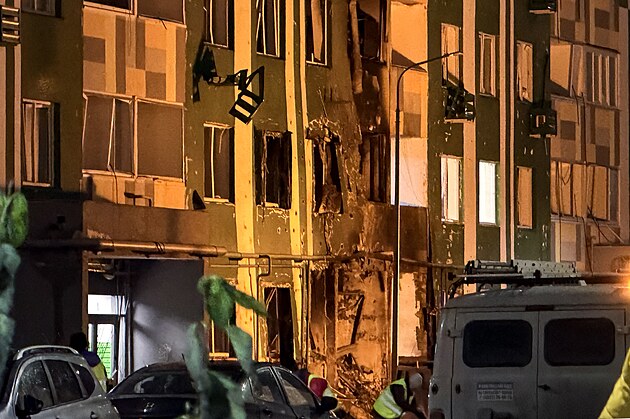Panelový dům v ruském Tveru zasažený dronem (12. prosince 2025)