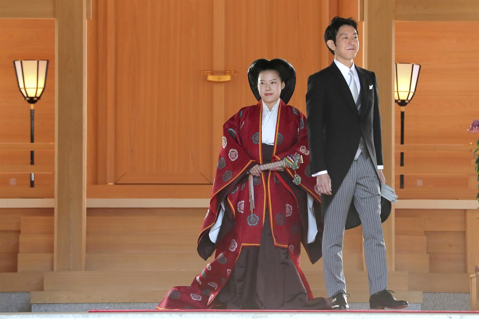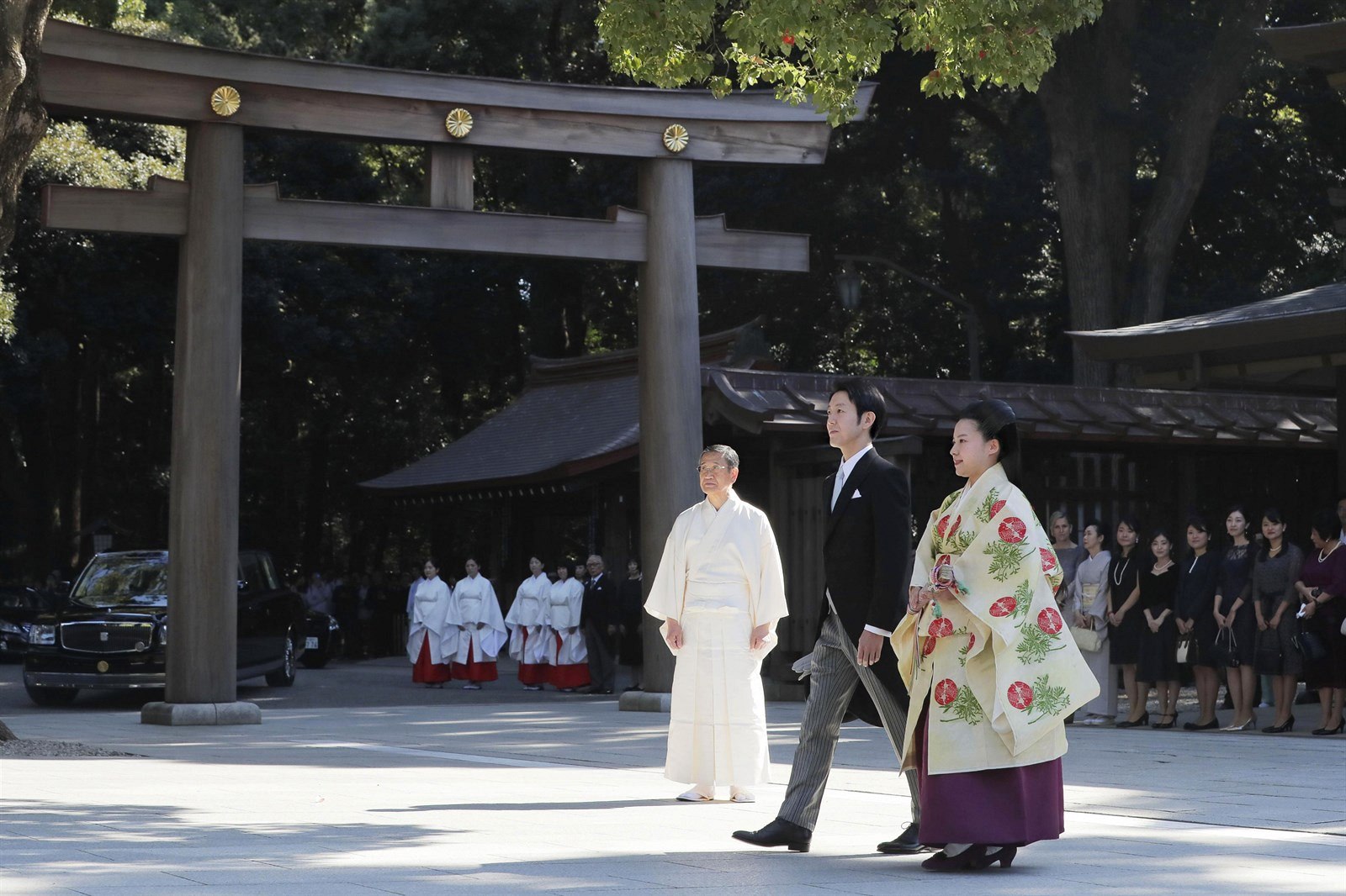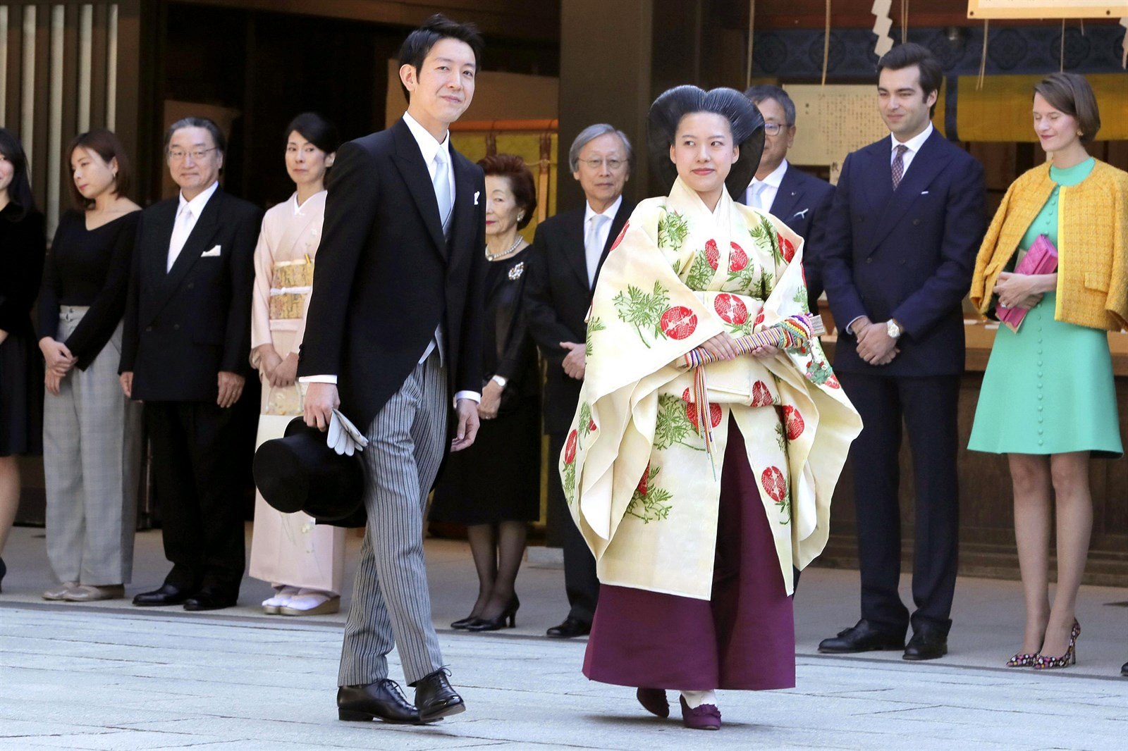 Princezna a její manžel se po obřadu šli poklonit do chrámu Mejdži.