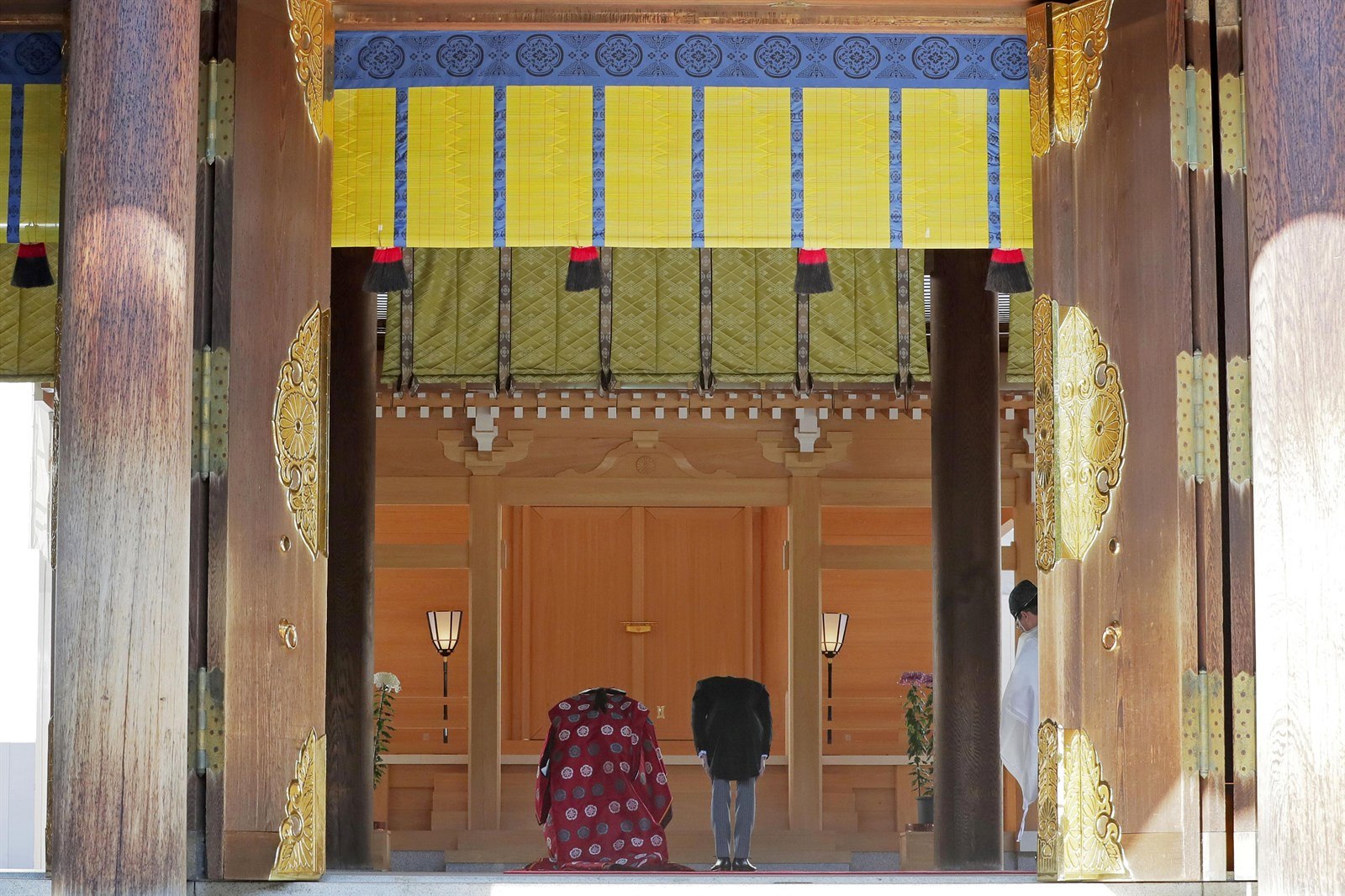 Manželé po ceremoniálu navšítvili chrám Mejdži.