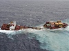Nejvíce tak záchranáře na místě znepokojují vysypané kontejnery. Na třiceti z nich byly umístěné čipy, takže je bude možné snadno dohledat - u těch zbylých to bude těžší. Asi tři čtvrtiny z nich se kvůli váze potopí ke dnu, zbytek bude plavat na hladině a může se v silném proudění dostat desítky kilometrů od místa havárie. Už teď je ve videozáběrech rozlomené lodi vidět šířící se bílou skrnu kolem trupu, která vznikla tak, že se do vody dostalo z několika kontejnerů sušené mléko.