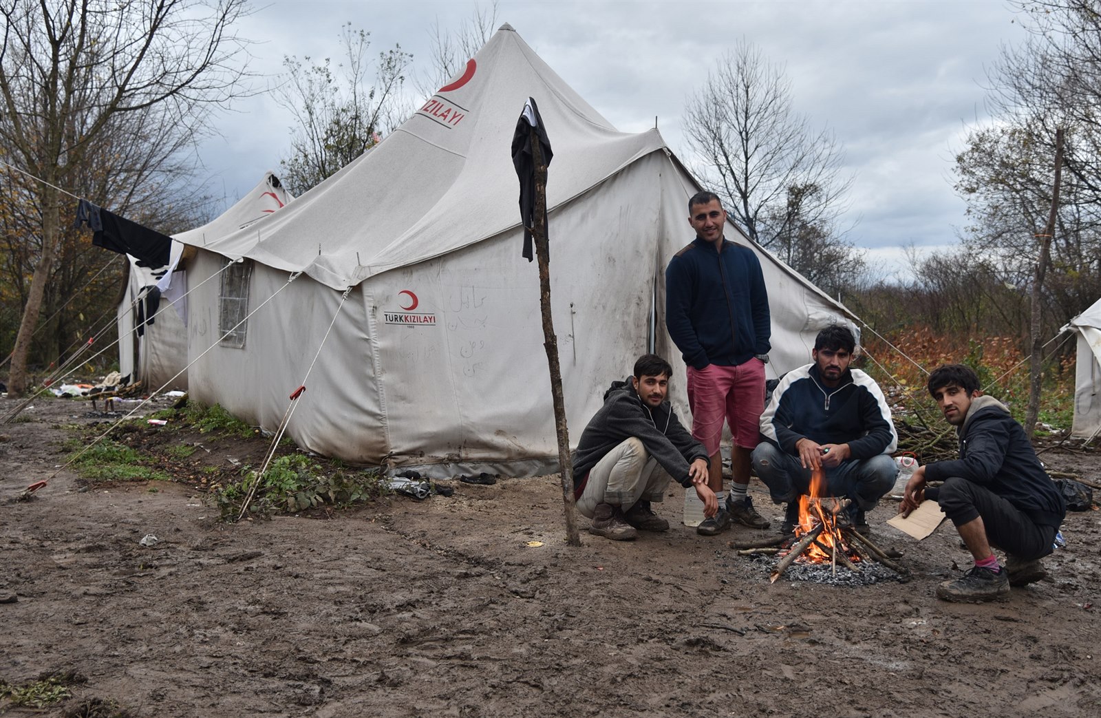 Asi tisícovka obyvatel, výhradně mužů, ale přežívá ve stanech, které někde zapomenuté ve skladech našel turecký Červený půlměsíc. Prší do nich a je v nich zima, všude je moře bláta. Vzduch je k zalknutí od mokrého roští, pro které se osazenstvo vydává do blízkého porostu zamořeného minami ještě z dob bosenské války.