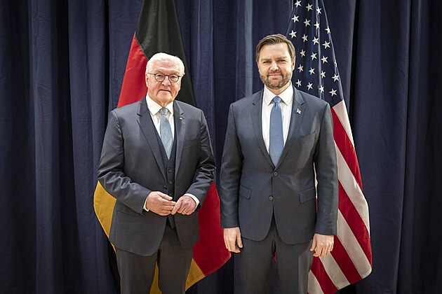 Německý prezident Frank-Walter Steinmeier (vlevo) a americký viceprezident J. D. Vance (14. února 2025)