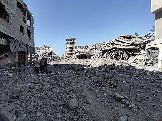 Palestinci si prohlížejí trosky po izraelském leteckém útoku na nemocnici Kemal Advan v Bejt Lahii v Pásmu Gazy. (29. prosince 2024)