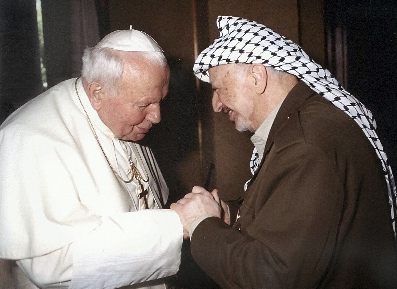 Jan Pavel II. a palestinský vůdce Jásir Arafat v roce 2001 v italských Alpách