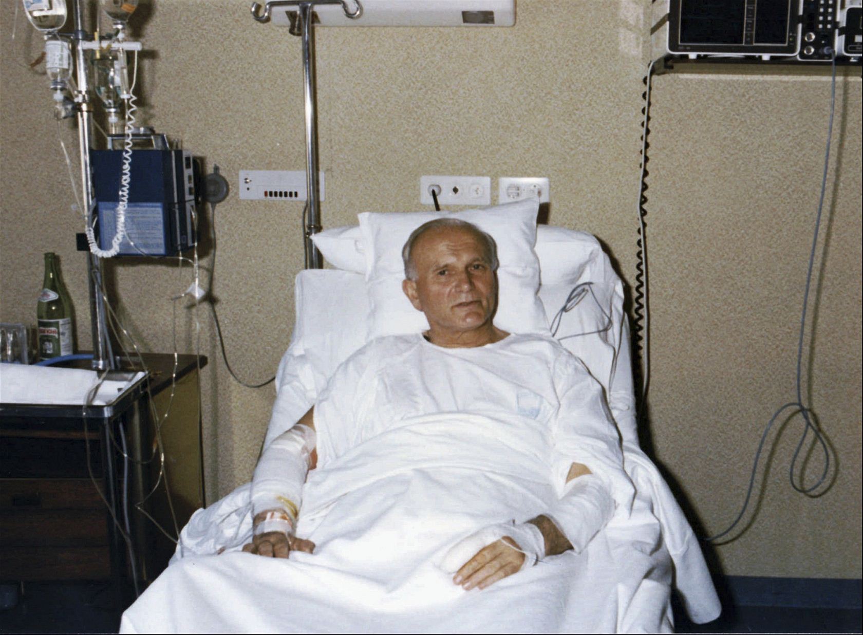 Jan Pavel II. v roce 1981 v nemocnici poté, co přežil pokus o atentát