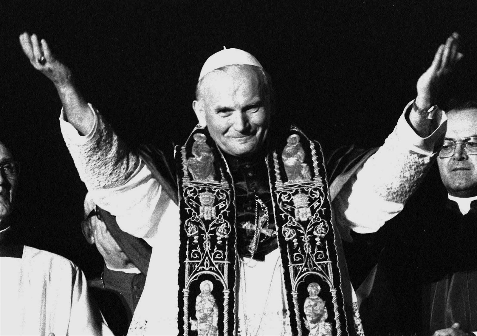 Nový papež Karol Wojtyla, který přijal jméno Jan Pavel II., zdraví v roce 1978 davy věřících shromážděných na náměstí svatého Petra ve Vatikánu.