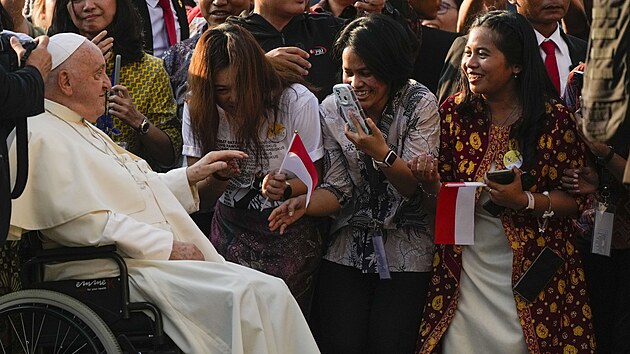 „Máte tu rodiny se třemi, čtyřmi nebo pěti dětmi, které jdou stále kupředu. To se odráží ve věkové úrovni země,“ pochválil papež v projevu v Jakartě Indonésany.