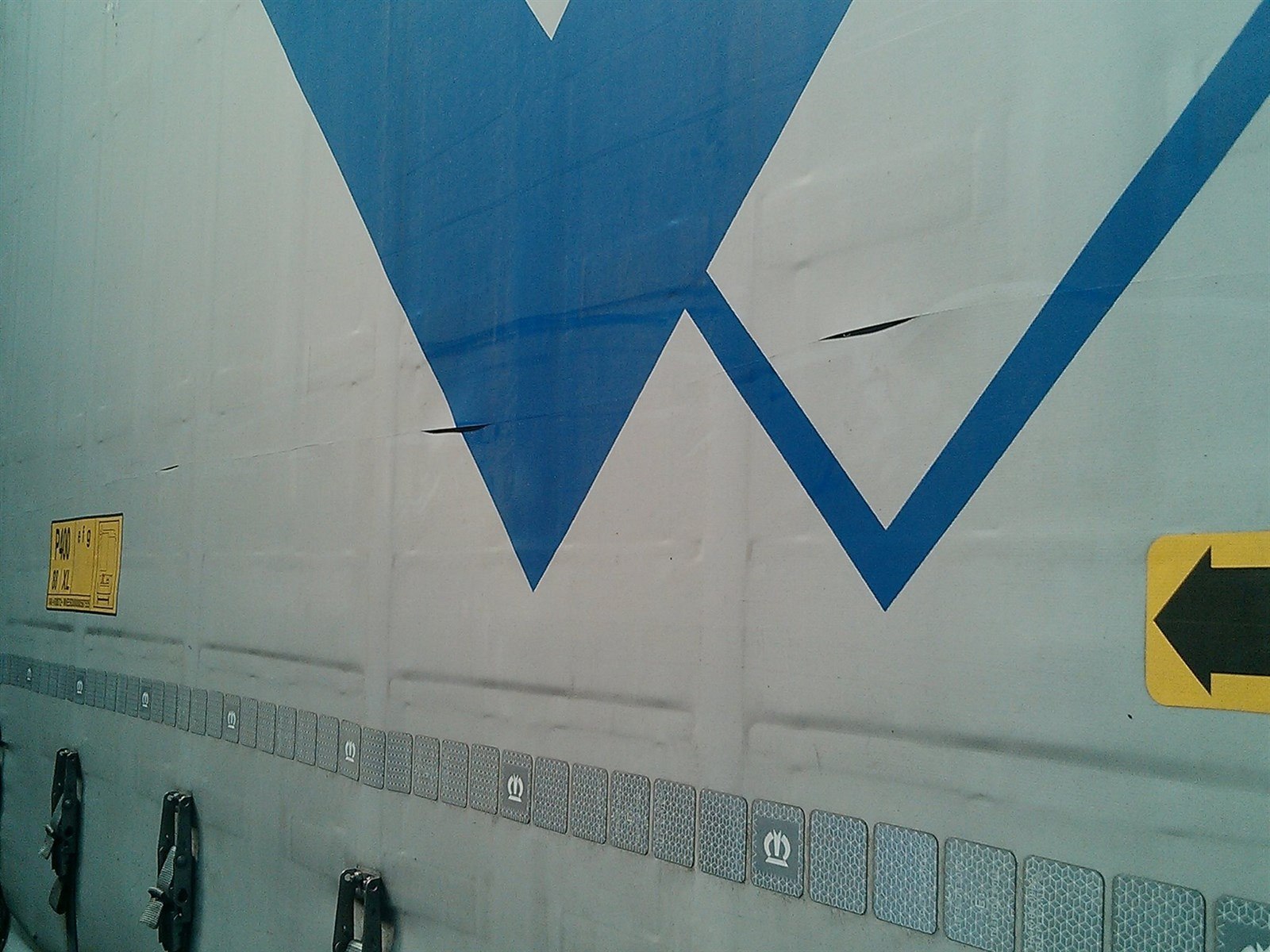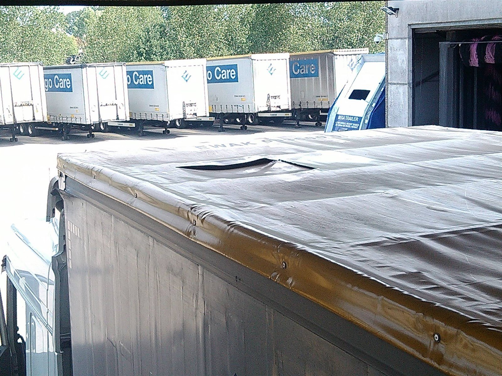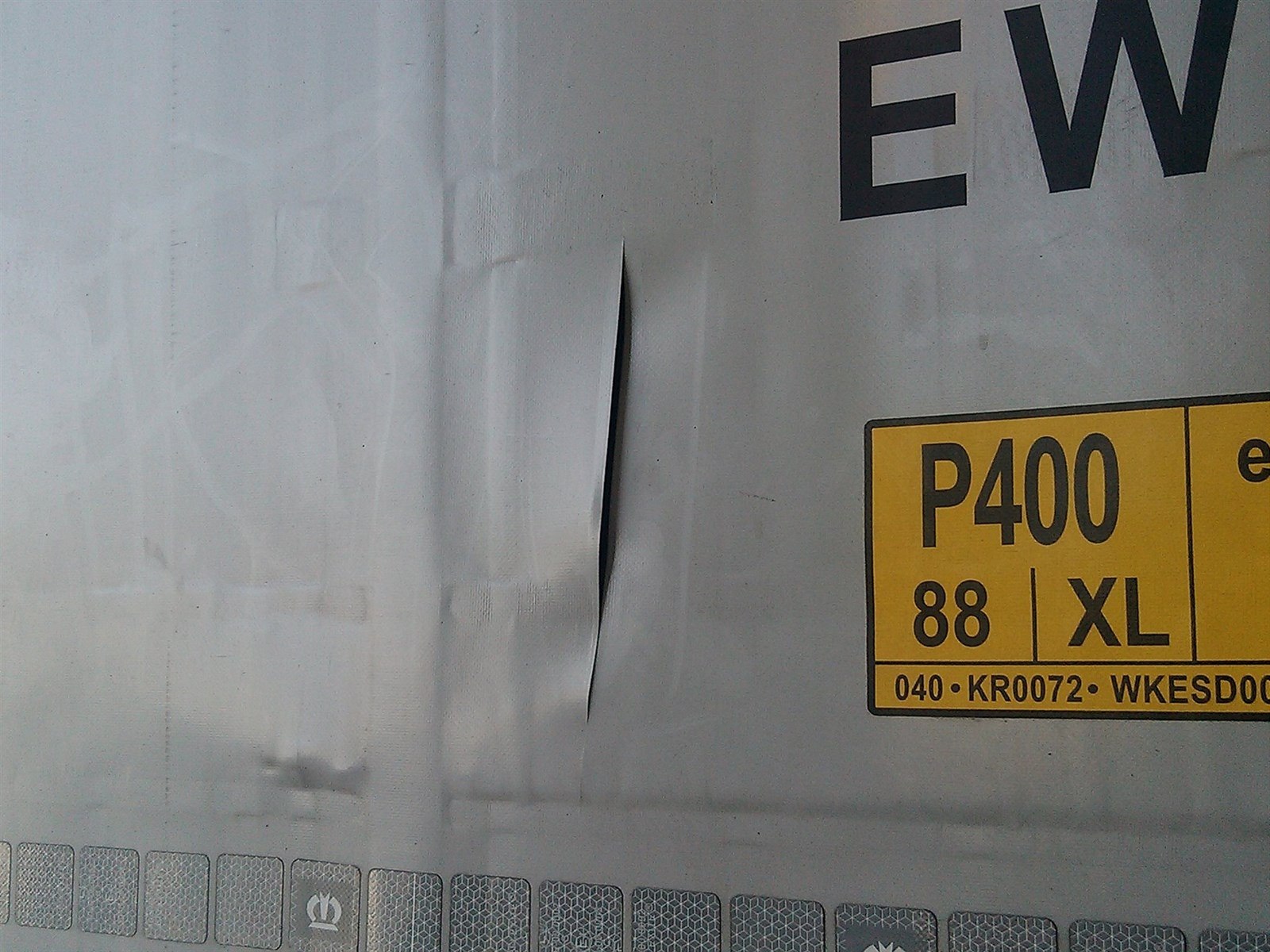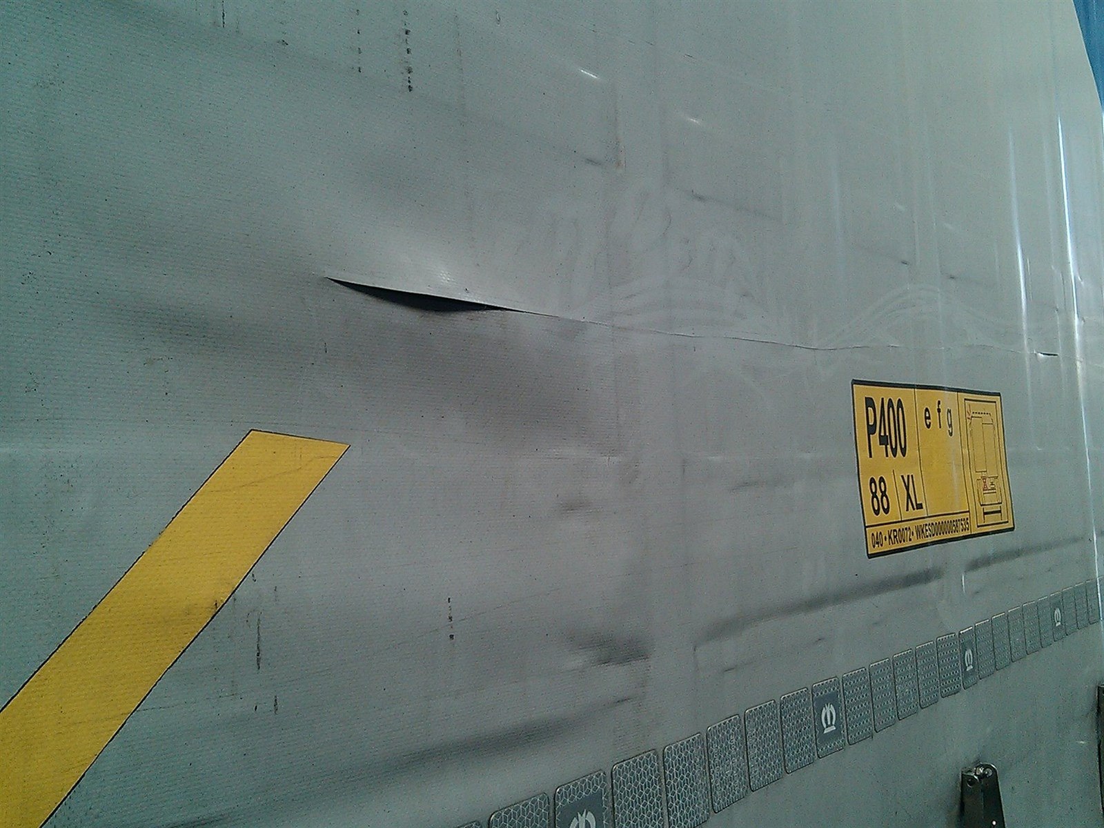 Průjezd kamionu ve francouském přístavu Calais. Výsledek? Zničené plachty, zlomený nos a zničený náklad, popsal situaci z místa Petr Pilař