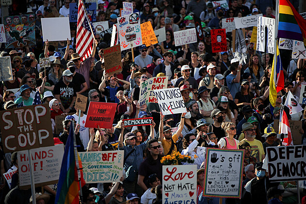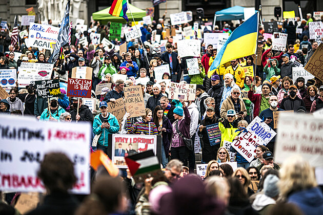 Protesty proti administrativě Donalda Trumpa se odehrávaly v řadě měst po celých Spojených státech. (5. dubna 2025)