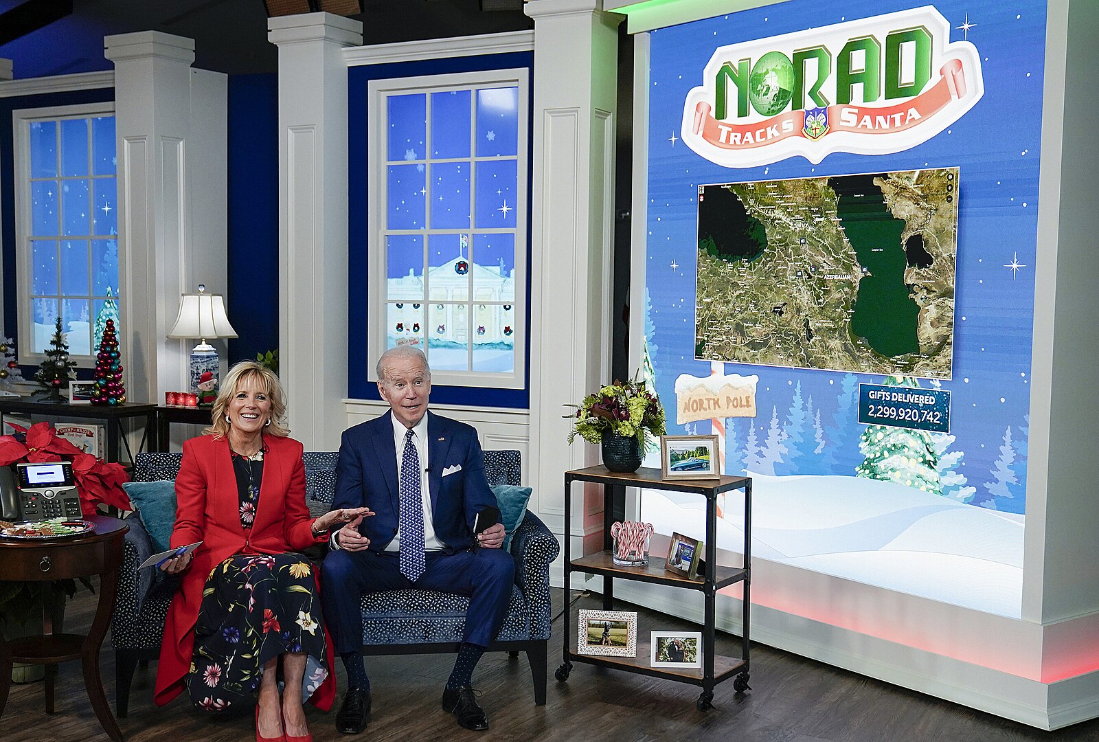 Joe a Jill Bidenovi si v pátek podle tradice popovídali s několika rodinami dětí, které zavolaly na velení protivzdušné obrany (NORAD), aby zjistily, kdy k nim dorazí Santa Claus s dárky. NORAD tuto recesistickou službu poskytuje o Vánocích již řadu let.