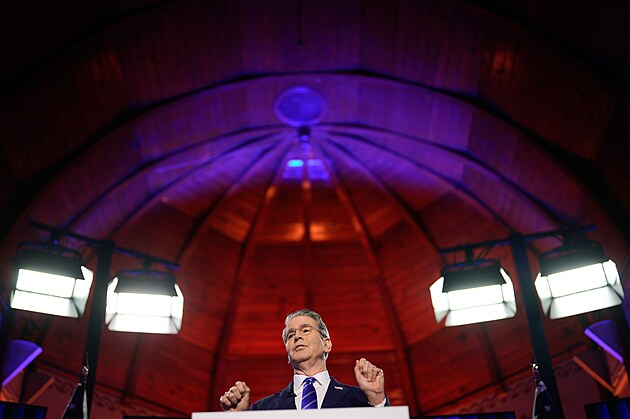 Kanadský premiér Mark Carney při projevu na Světovém ekonomickém fóru v Davosu. (20. ledna 2026)