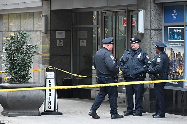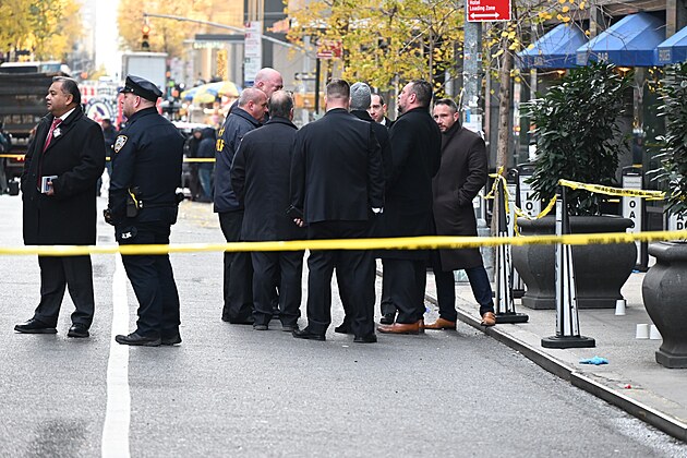 Policie v New Yorku operuje na místě, kde byl zastřelen éf americké zdravotní pojiovny UnitedHealthcare Brian Thompson. (4. prosince 2024)