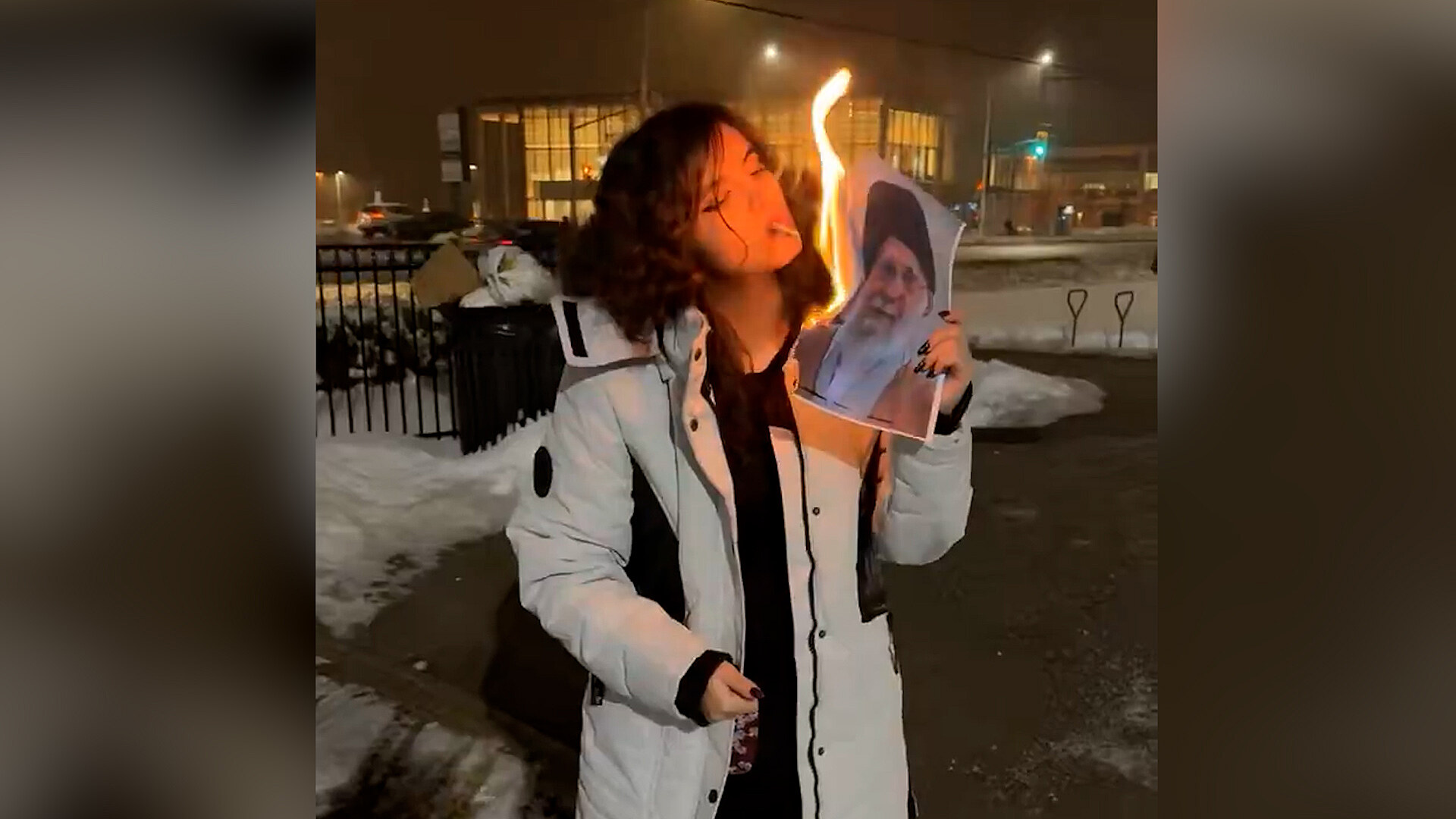 Jedním potáhnutím z cigarety, připalované od hořící Chameneího fotky se mladá žena, která uvedla, že je v Kanadě žijící uprchlicí z Íránu, stala viditelným globálním symbolem proti brutálnímu potlačování protivládních protestů v Íránu.