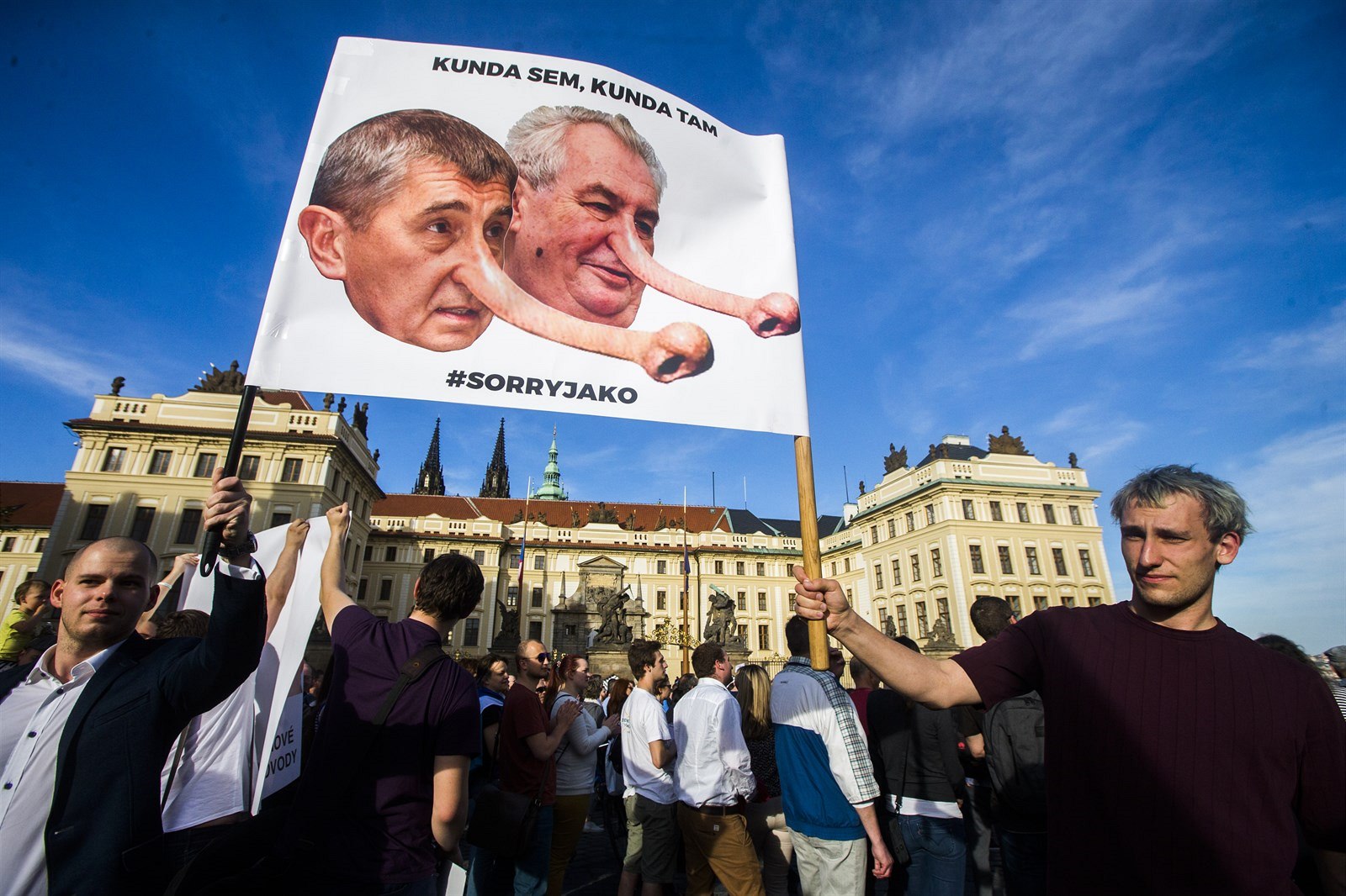 Stovky lidí se ve čtvrtek v podvečer sešly na Hradčanském náměstí v Praze na demonstraci proti prezidentu Miloši Zemanovi a ministru financí Andreji Babišovi(ANO). Demonstranti zaplnili prostor před Matyášovou branou, která je západním vstupem do Pražského hradu. Řečníci vyzývali politiky, aby řešili vládní krizi. Ministerstvo financí podle nich už dále nemá podléhat hnutí ANO. Pokud by nebyl Babiš odvolán, podpořili podání ústavní žaloby na Zemana.